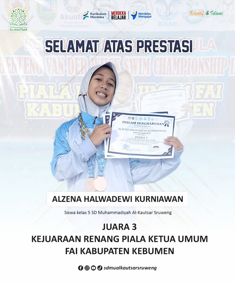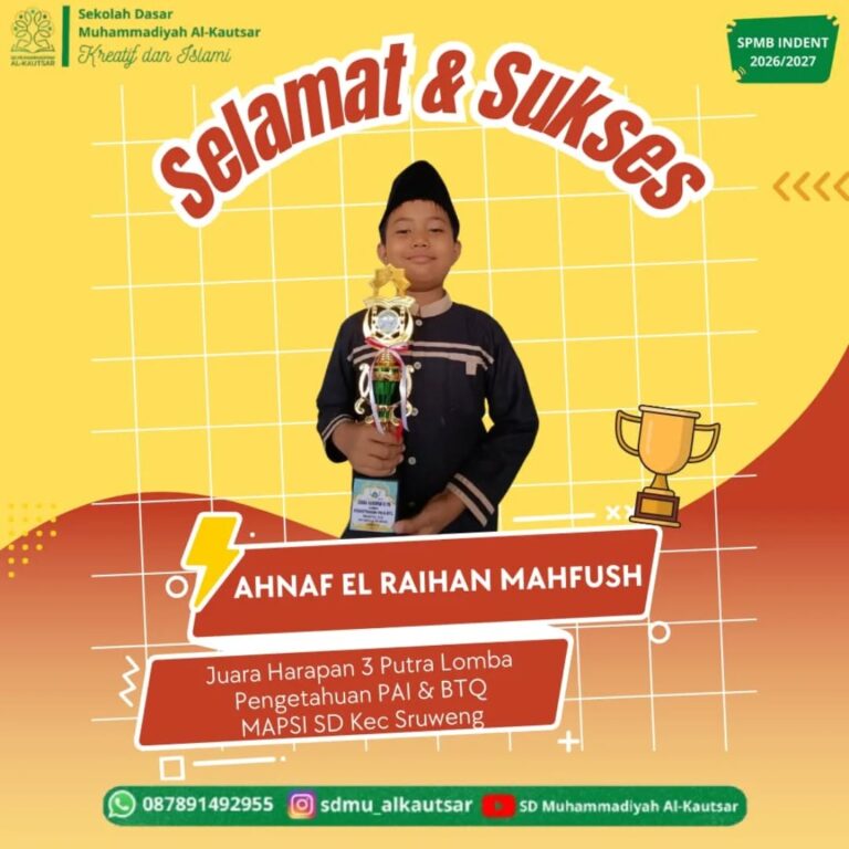 Kabar prestasi kembali menghiasi keluarga besar SD Muhammadiyah Al-Kautsar. Siswa dan siswi terbaik sekolah ini berhasil meraih Juara 2 (Azril Zaki Faizan) dan Juara 3 (Alzena Halwadewi Kurniawan) pada Lomba Tahfidz Al-Qur’an, serta Juara 3 (Alzena Halwadewi Kurniawan) pada Lomba…